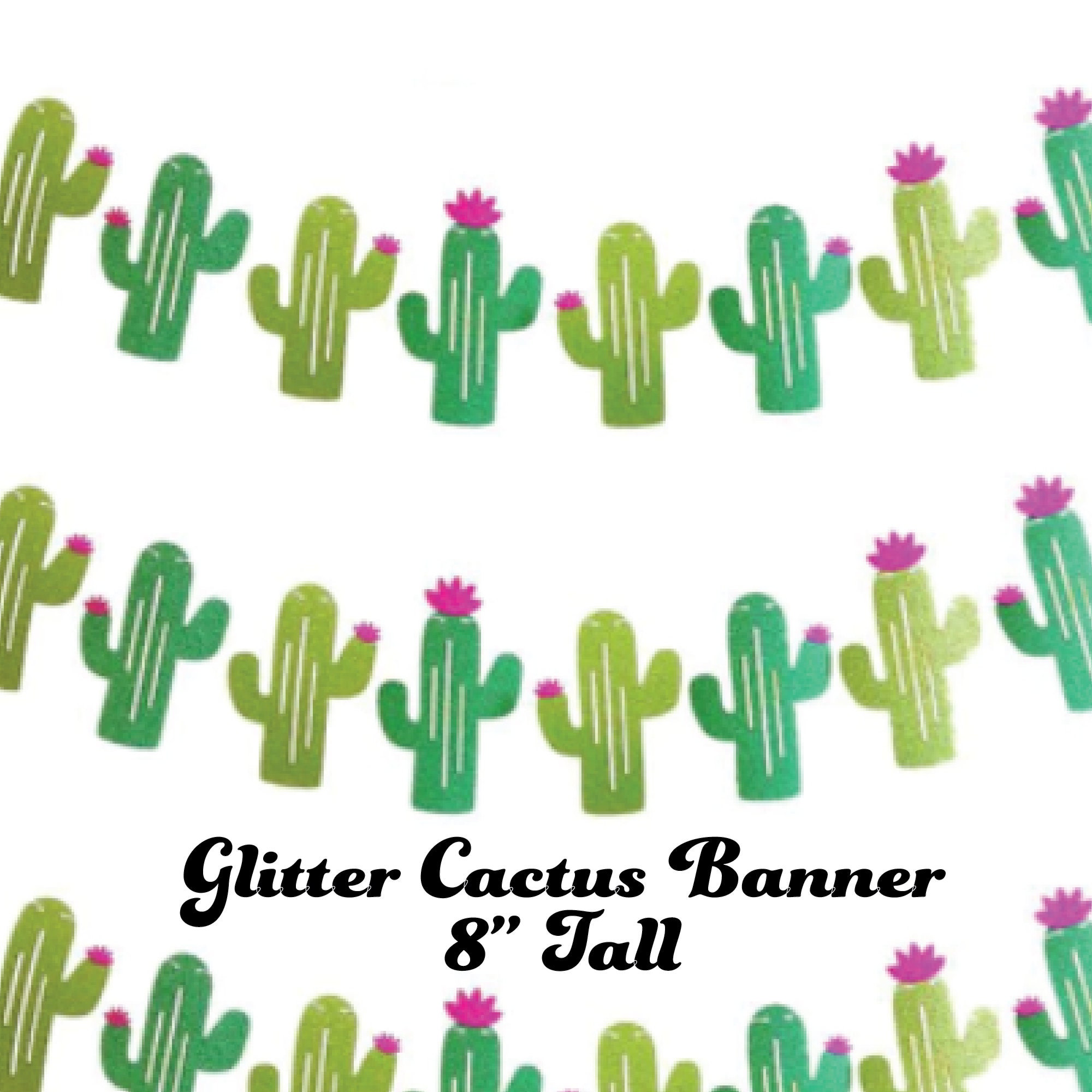 This is a large 8" tall with a 10 foot string beautiful cactus banner. Ready to ship with 8 cactus plants and 10 foot string! Made of felt and glitter, these come with ribbon to string them and a plastic needle to thread each piece!