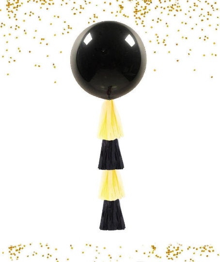 A black 36" Gender reveal balloon with yellow & black tassels!