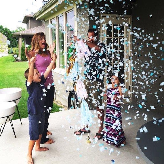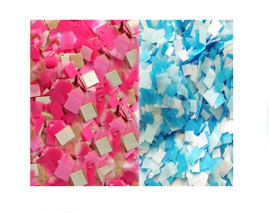 You get both colors of confetti (pink and blue) or I can pre-fill it for you-you can email me results or let me know at check out. It is sent flat ready to be filled with helium. Comes with 4 tassels in yellow & black.