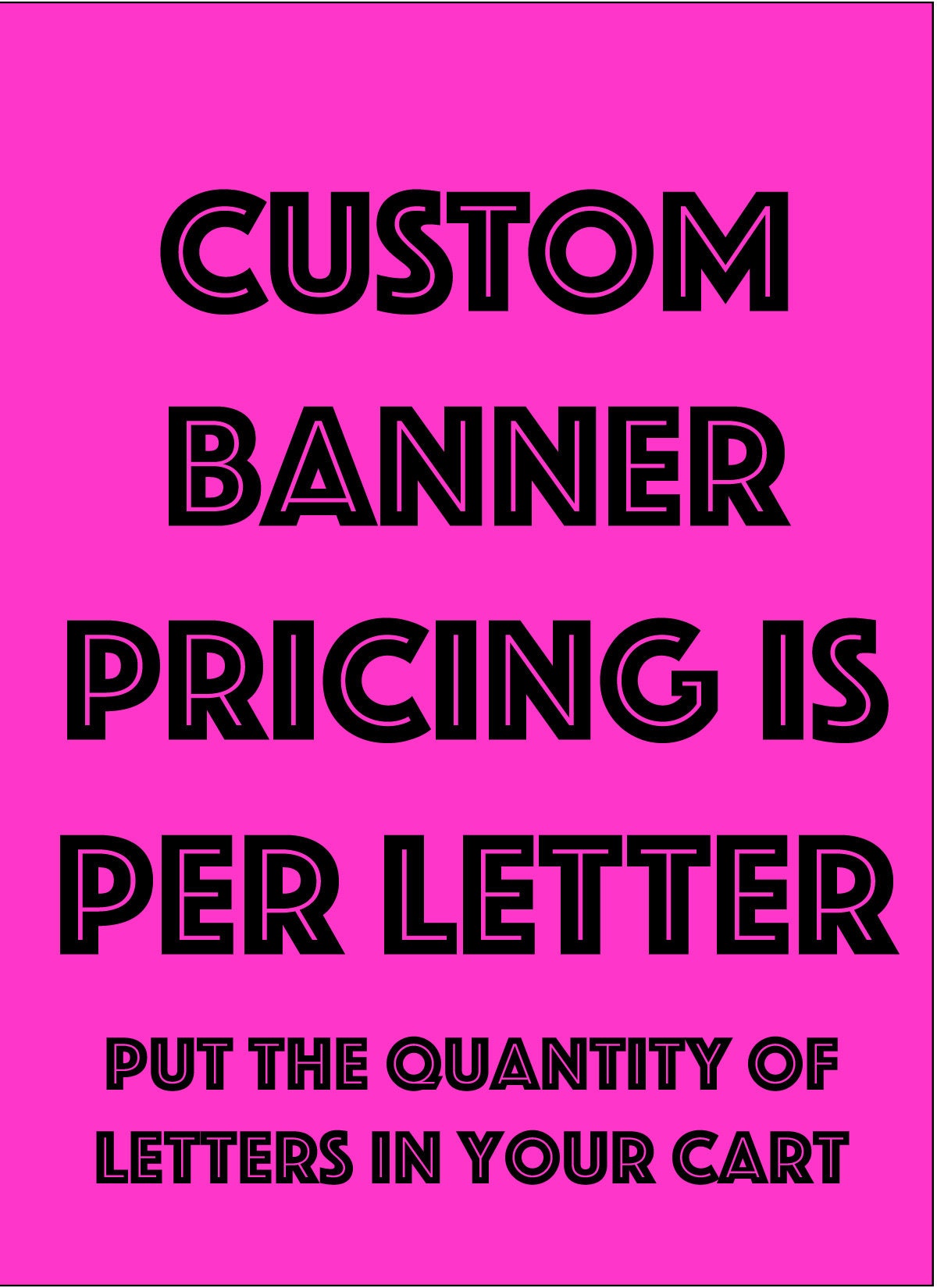 Want a custom banner? Custom banners are $2 per letter. Choose "custom contact me" in the drop down menu and send me a message and we can set up a custom order.