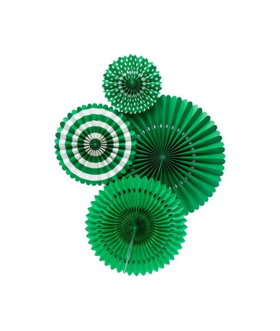 B) Green Fans set of 4 fans: One 17" paper fan, One 14" tissue fan, One 11" paper fan, One 8" paper fan