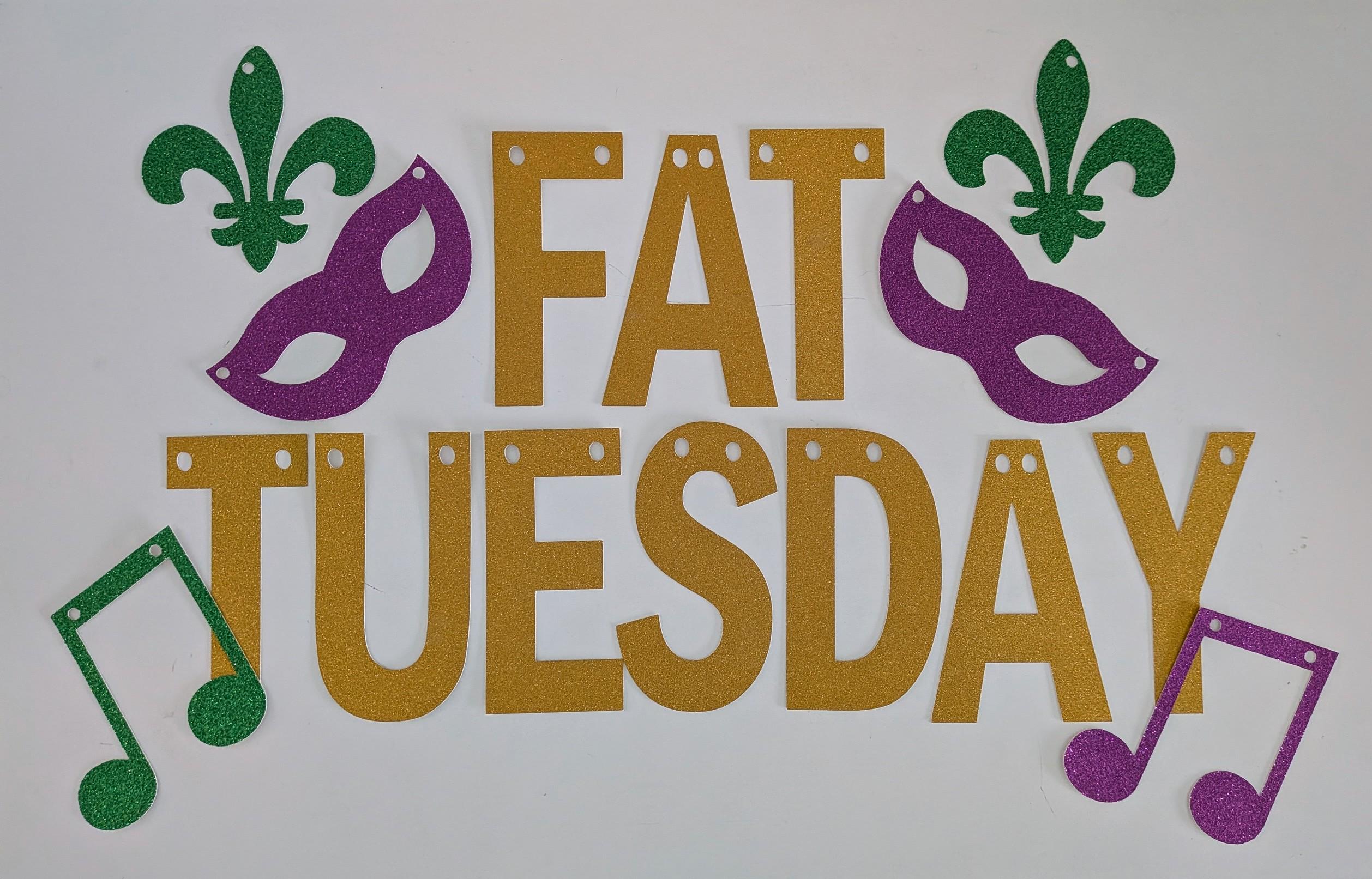 Q) Fat Tuesday Plain letter banner 4" tall gold ready to be strung on provided string