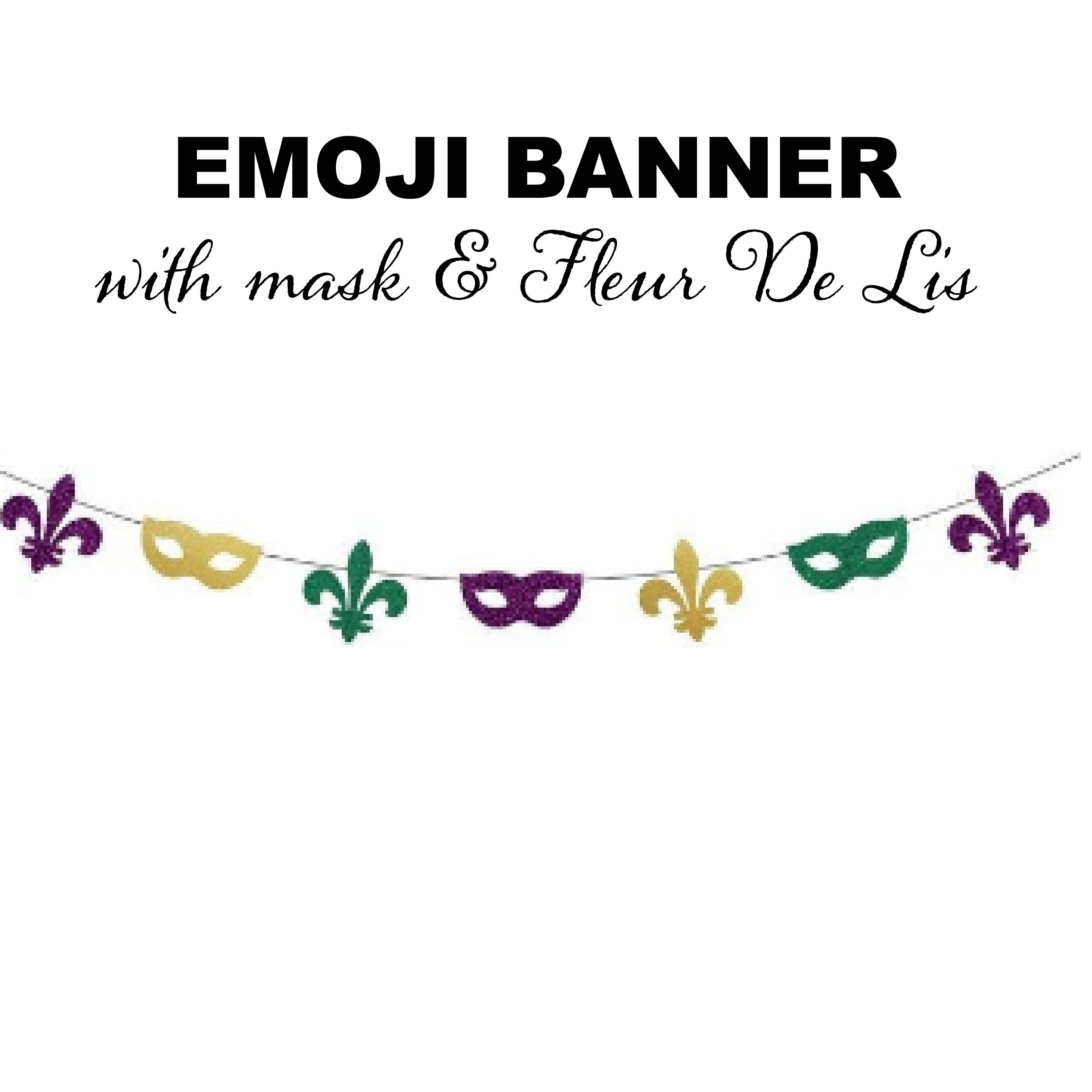 F) Emoji banner with fleur de lis and masks