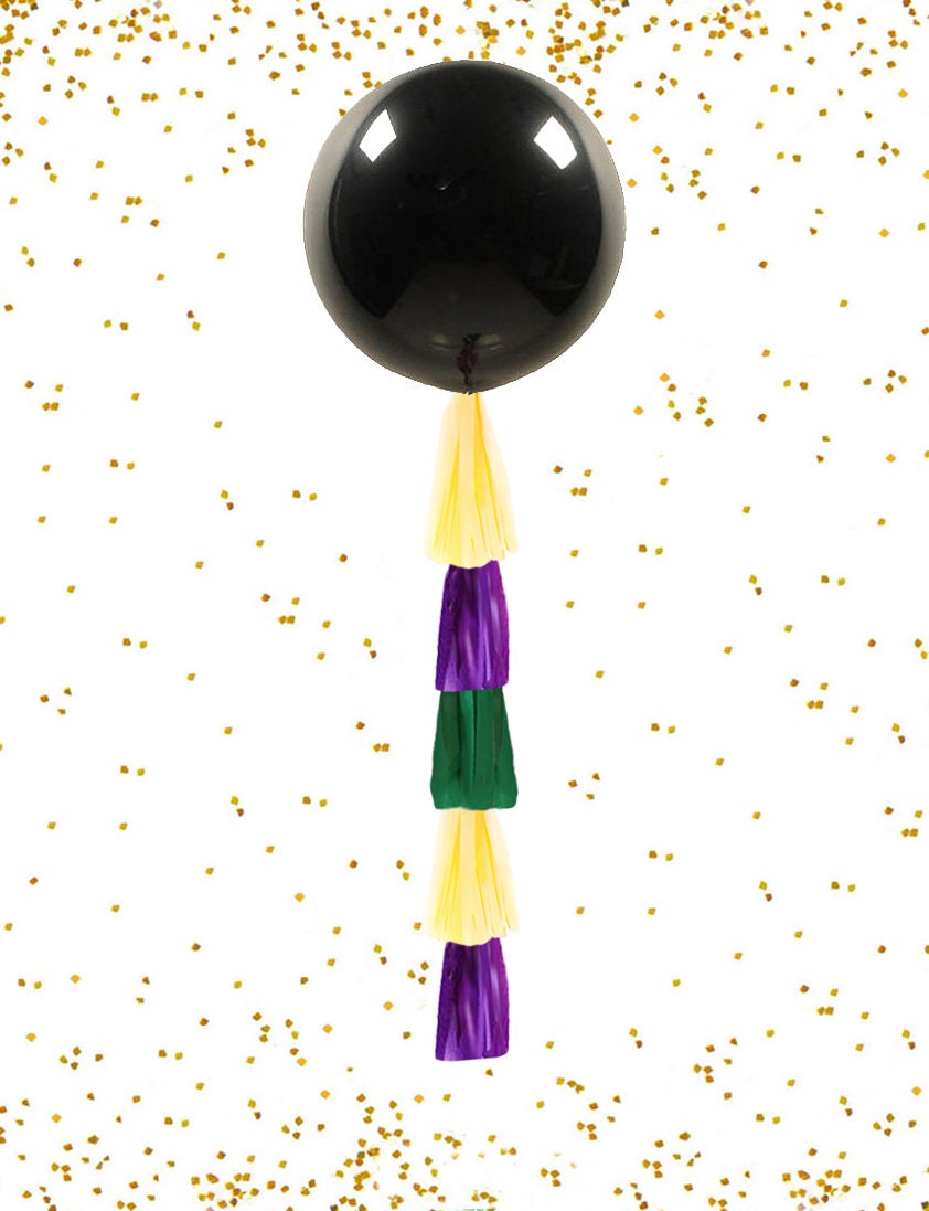 H) A gold 36" balloon with yellow, green and purple tassels!