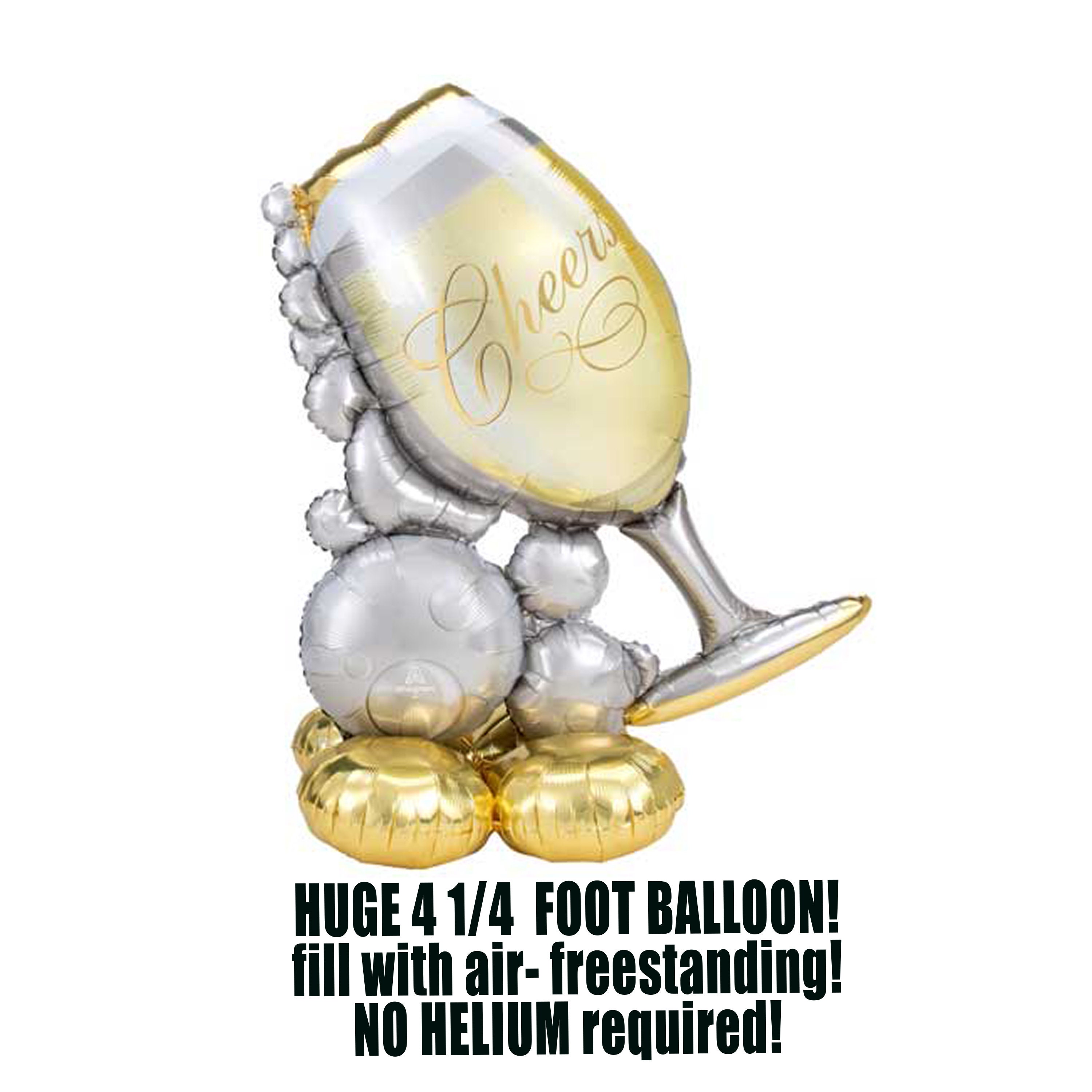 ★ 4.25 foot gold champagne bottle and bubbles balloon